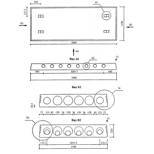 Плиты длиной 2980 мм и шириной 1190 мм с арматурой из стали классов A-III и Bp-I из тяжелого бетона.
