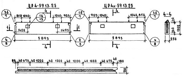 Серия 1.117-9    Панели групп ЦР1, ЦР2, ЦР4, ЦР5  толщиной 250 мм.